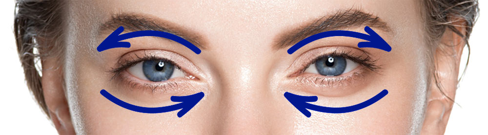 Крем нужно распределять по кругу: начиная с внутреннего уголка глаза к внешнему по верхнему веку и от внешнего — к внутреннему по нижнему.